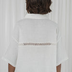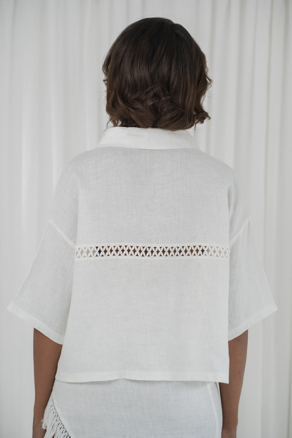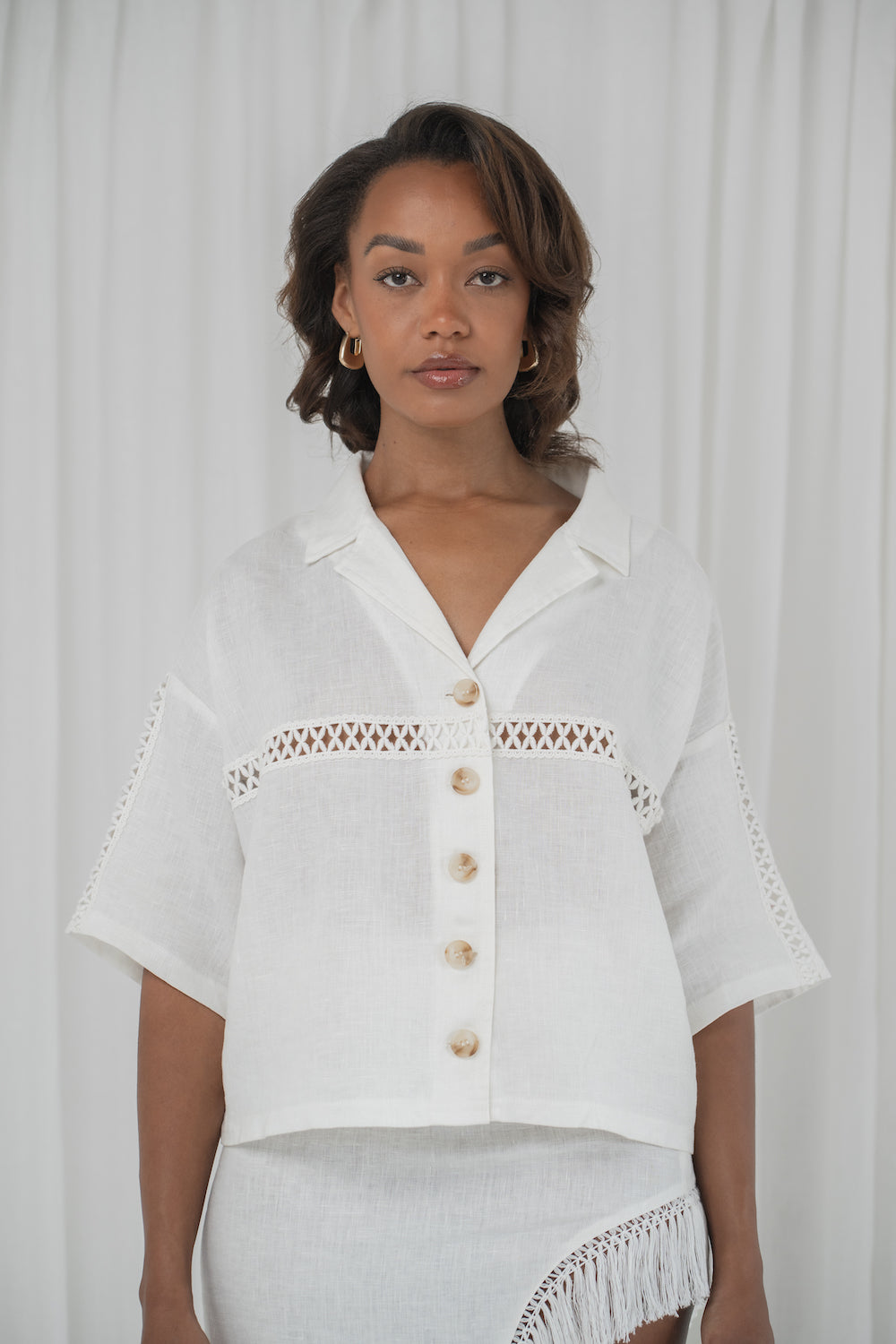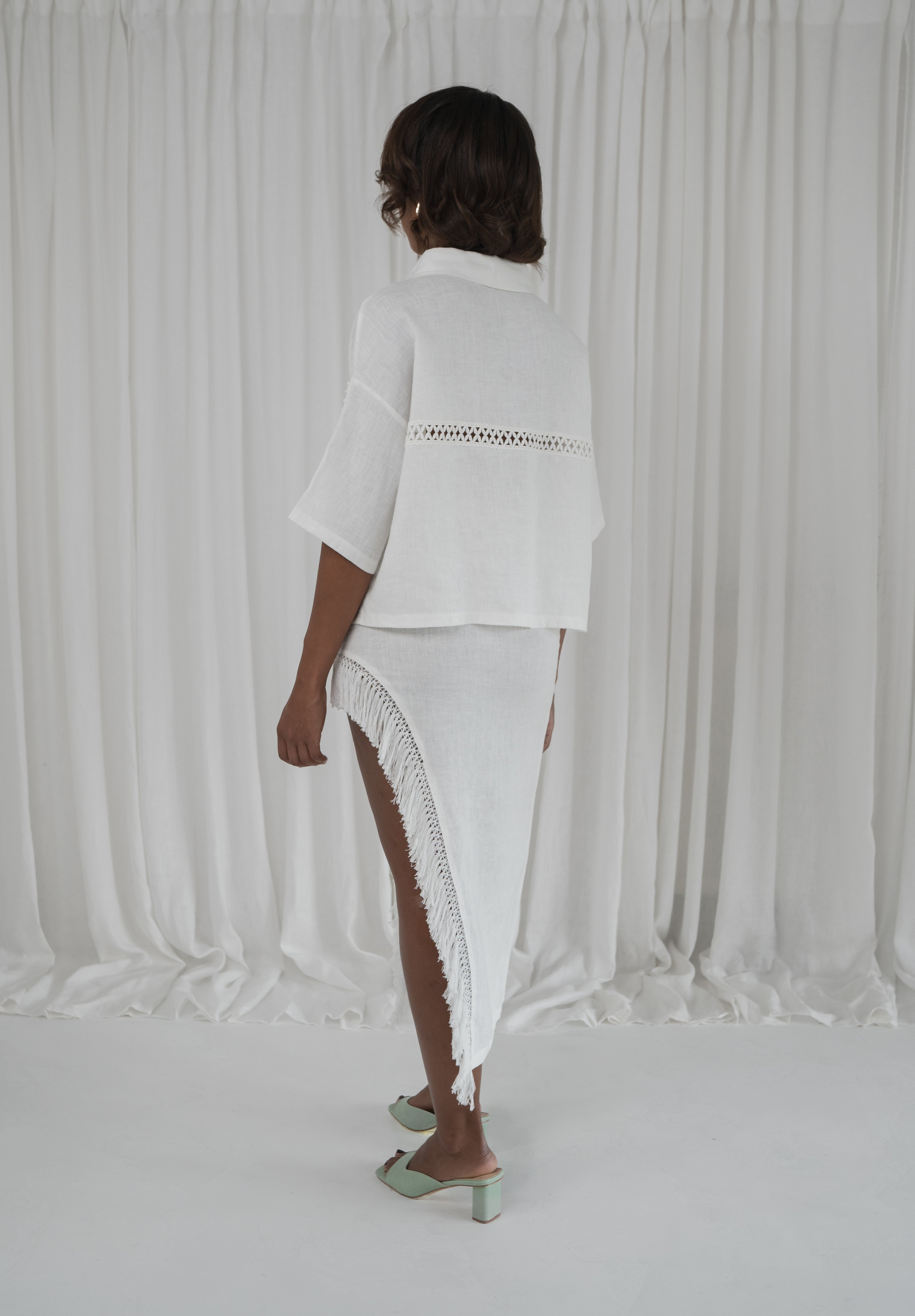 staple linen shirt but make it dula. the no. 17 is our take on a wardrobe classic. the flowy linen shirt features trim detailing, dropped shoulders and button fastenings. made from a soft to touch linen, it has a classic collar with a dropped neckline to give a casual comfy vibe. the no. 17 has endless ways to be styled but it is the perfect match to our no. 4 skirt which features the exact same trim detailing.