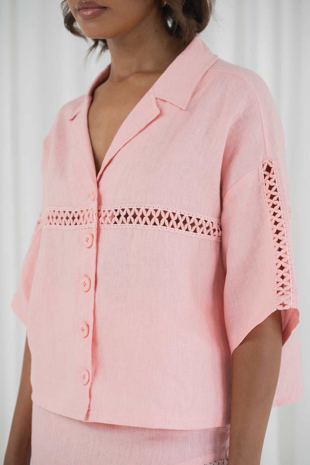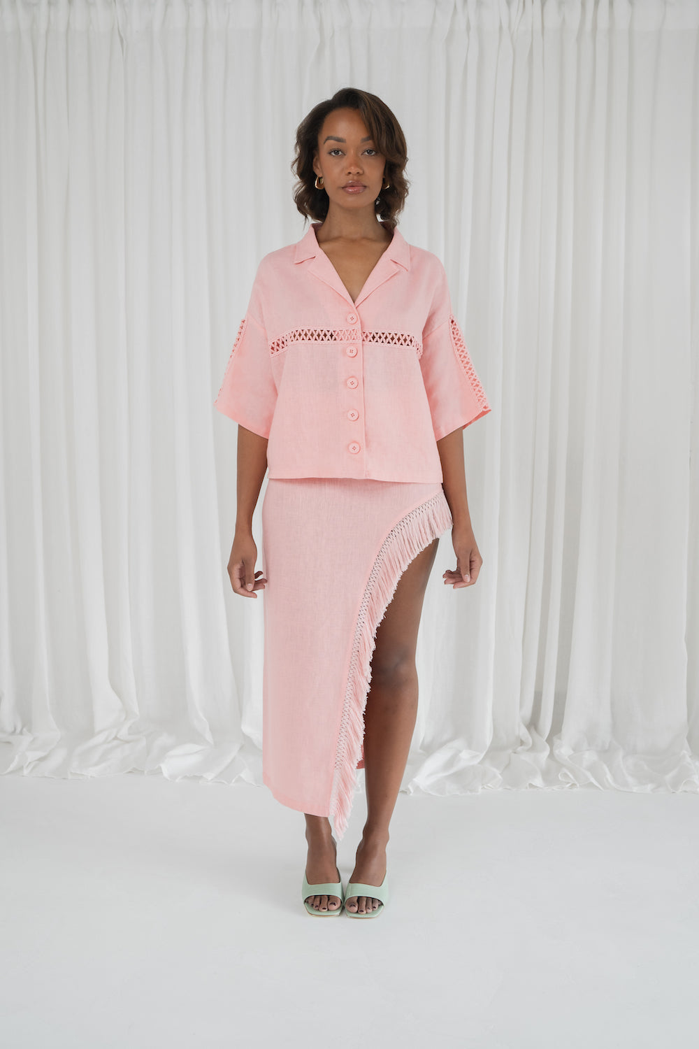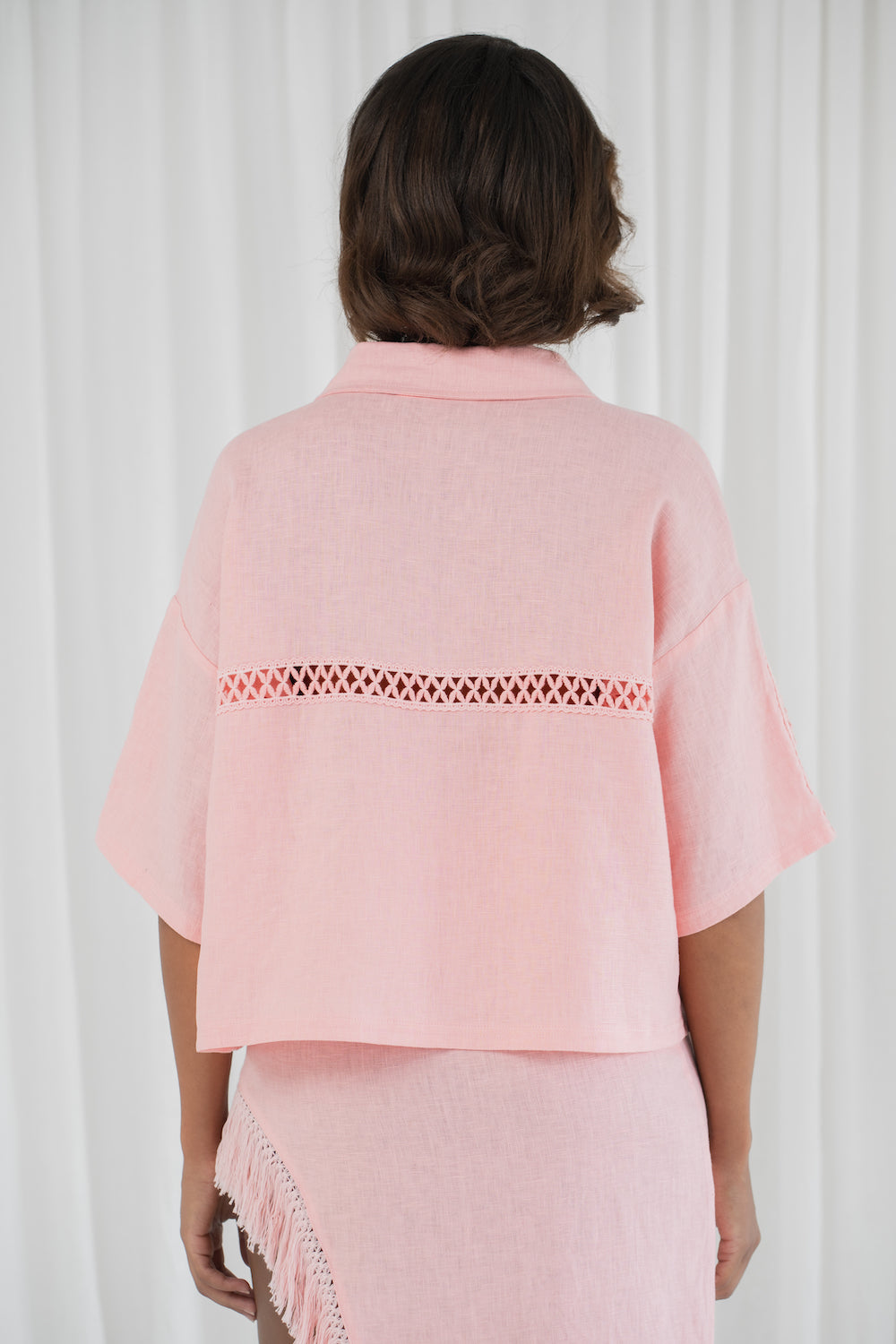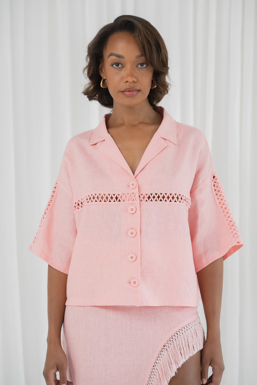 staple linen shirt but make it dula. the no. 17 is our take on a wardrobe classic. the flowy linen shirt features trim detailing, dropped shoulders and button fastenings. made from a soft to touch linen, it has a classic collar with a dropped neckline to give a casual comfy vibe. the no. 17 has endless ways to be styled but it is the perfect match to our no. 4 skirt which features the exact same trim detailing.