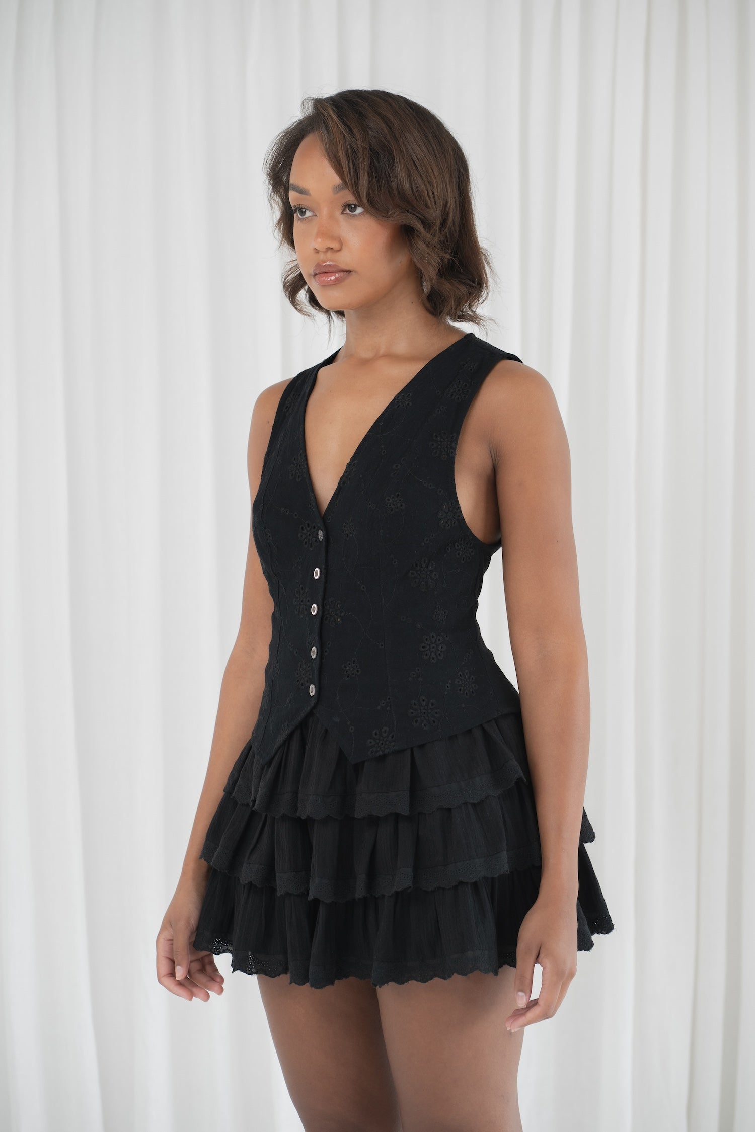 the no. 10 is a love letter to cotton. romantic, layered tiers and pretty trims accentuate the natural drape cotton has whilst the sheered waistband provides a cinched yet comfortable fit around the waist. we love the playful flirtiness the no. 10 has which makes it a dream to wear. style with chunky boots and leather for a cool girl transitional look.